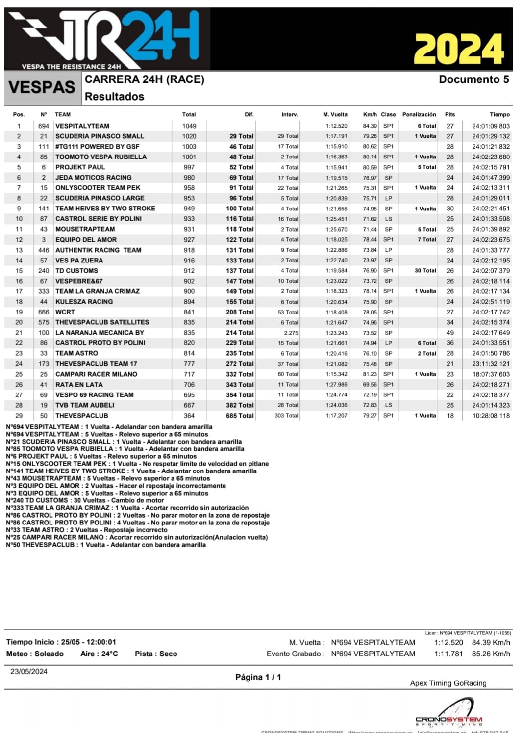 Le temps scratch des 24h de Zuera établi par le team RRT - Vespitaly