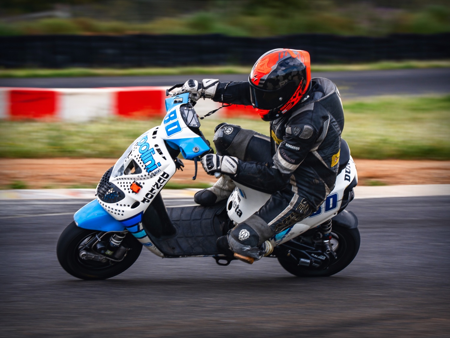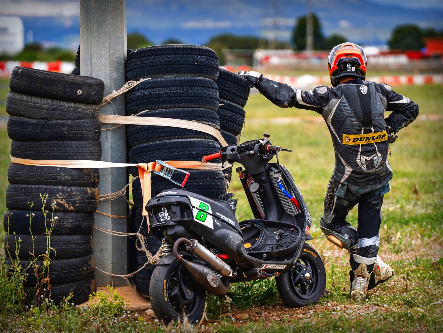 Hervé engageait deux machines : son Zip SP 100cc en catégorie GP25 (#8) et un tout nouveau Zip 50cc pour concourir en GP15 (#80). Voici le compte-rendu détaillé de sa course.