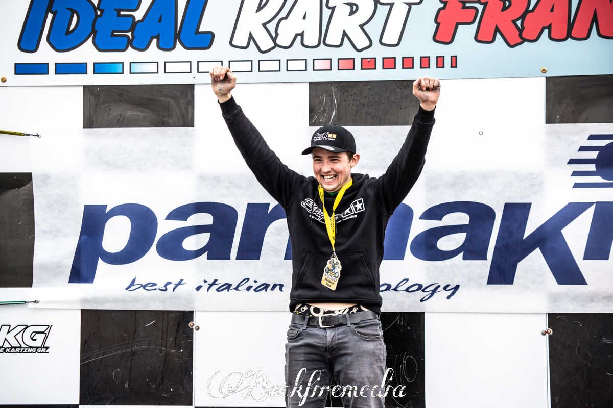Première sortie au guidon et triplé gagnant pour Romain qui a profité de la piste sèche pour tout donner et conserver la pôle position des qualifications jusqu’à la 3ème manche en passant par les deux autres manches. En prime, il réalise le meilleur temps de la journée qui devient son nouveau record sur ce circuit puisqu’il parvient à faire le tour en 1,033 !