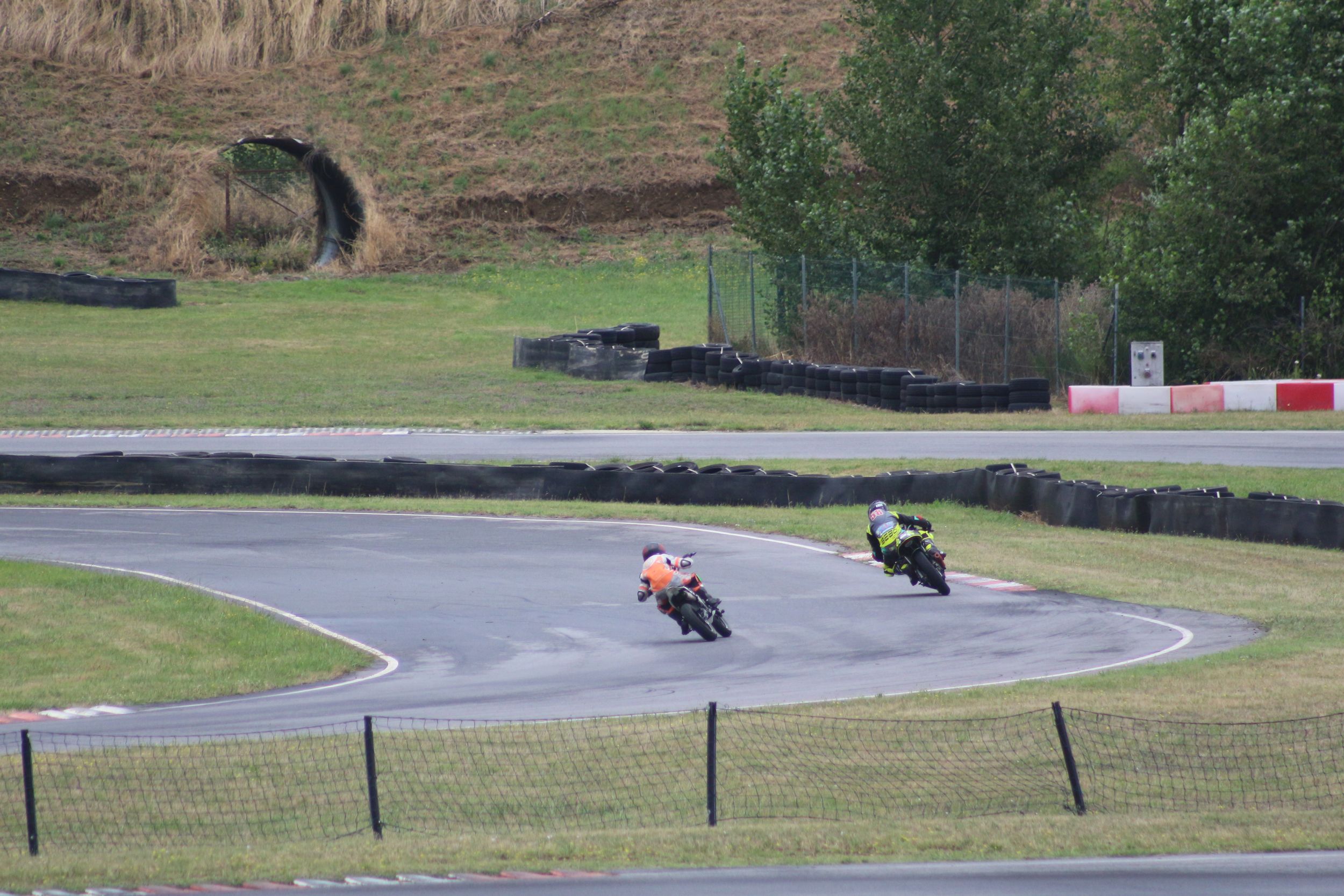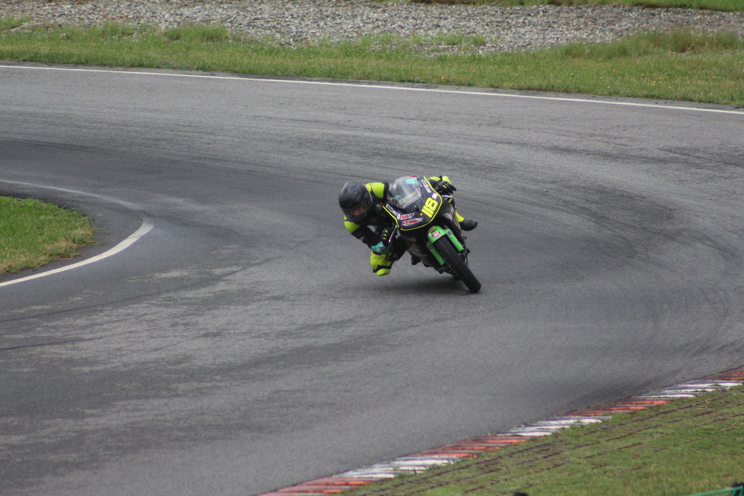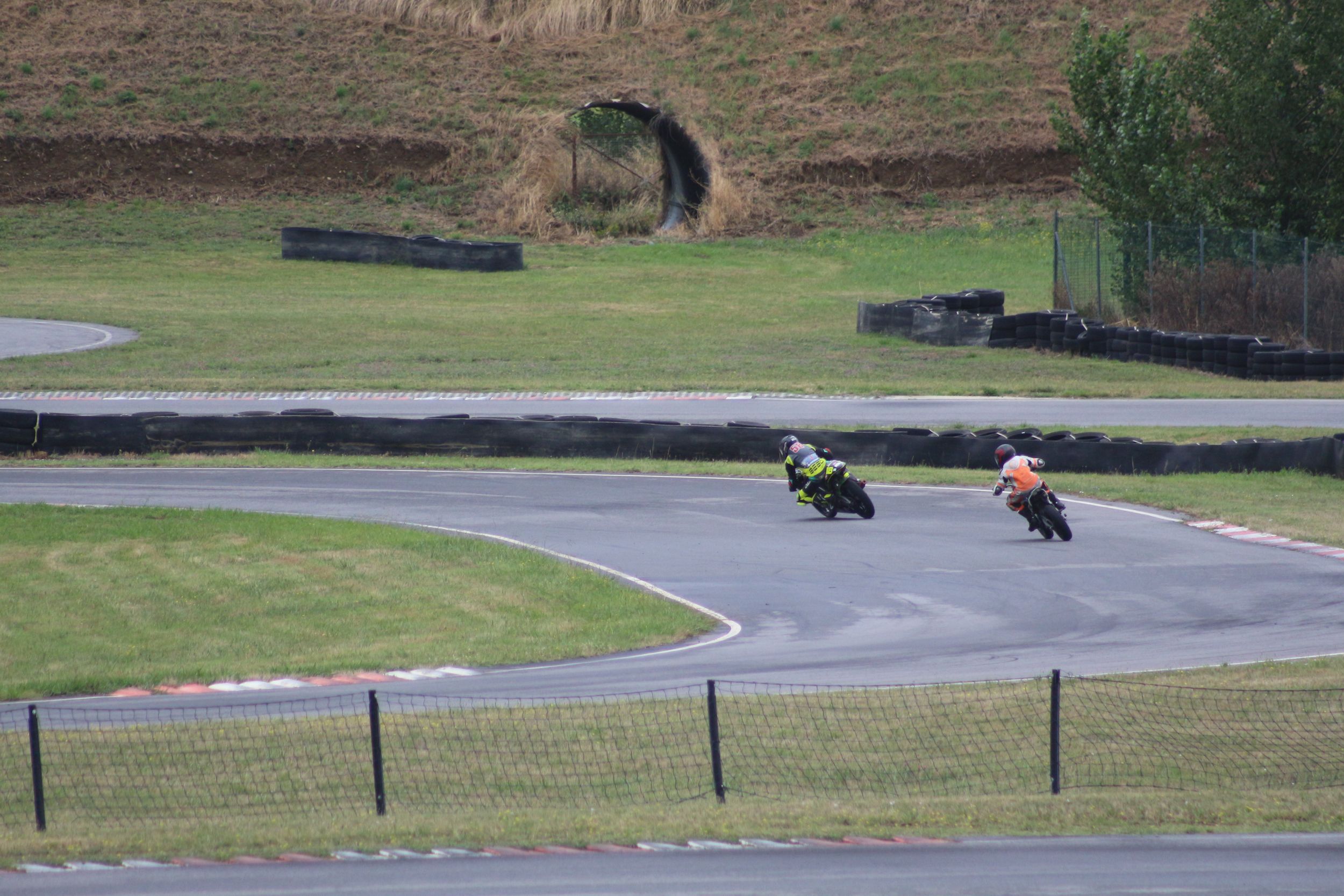 Au deuxième tour, Kevin a raté une corde de quelques centimètres, offrant à son rival une opportunité d’essai de dépassement. Cependant, il n’a pas redressé la moto, prenant le risque d’un contact. Heureusement, l’adversaire n’a pas réussi à passer, et Kevin a gardé sa position. Progressivement, il a pris de l’avance, mais ne pouvait pas accélérer davantage à cause d’un autre pilote devant lui, qui freinait très tard. Le choix était difficile : tenter un dépassement risqué ou rester prudent derrière et risquer de se faire doubler par son adversaire. Il a choisi la prudence, décidant de ne pas gâcher sa course.