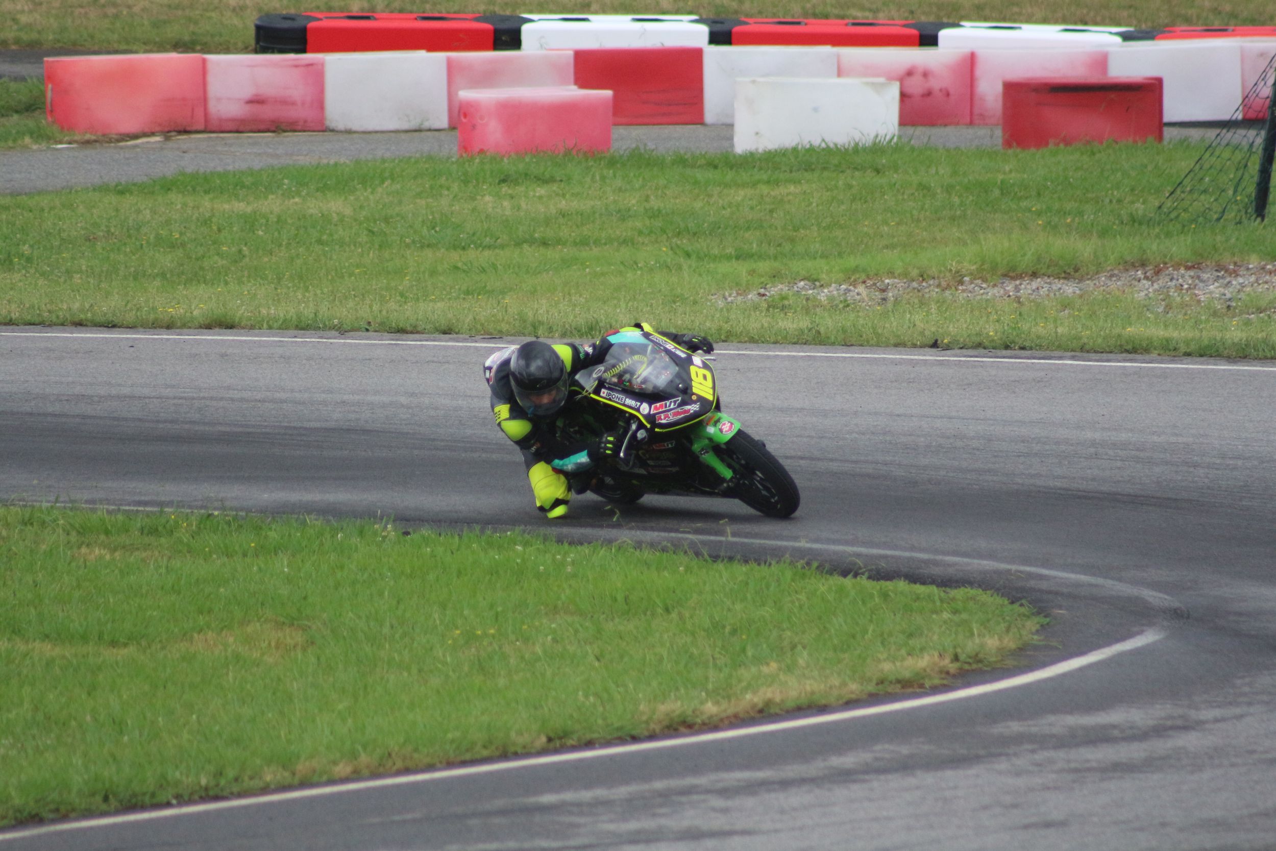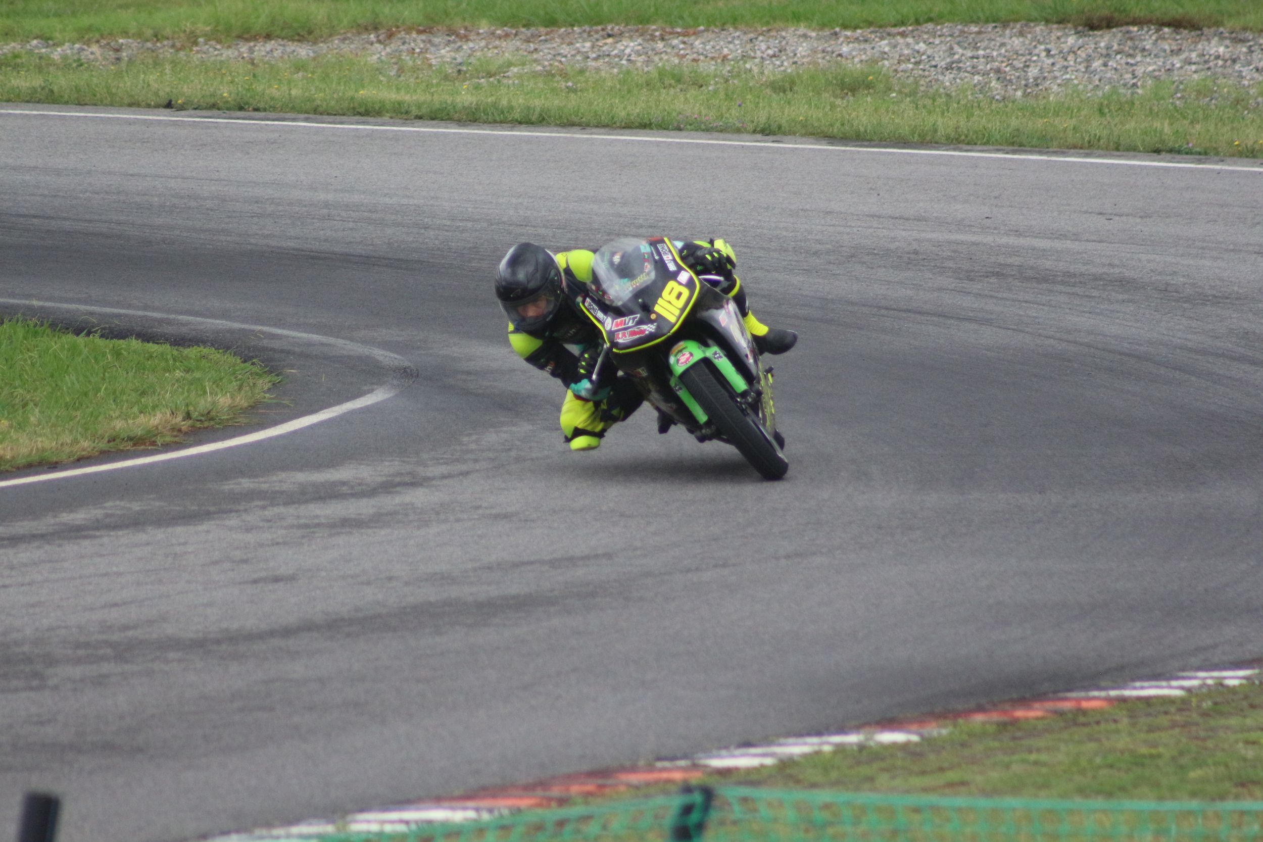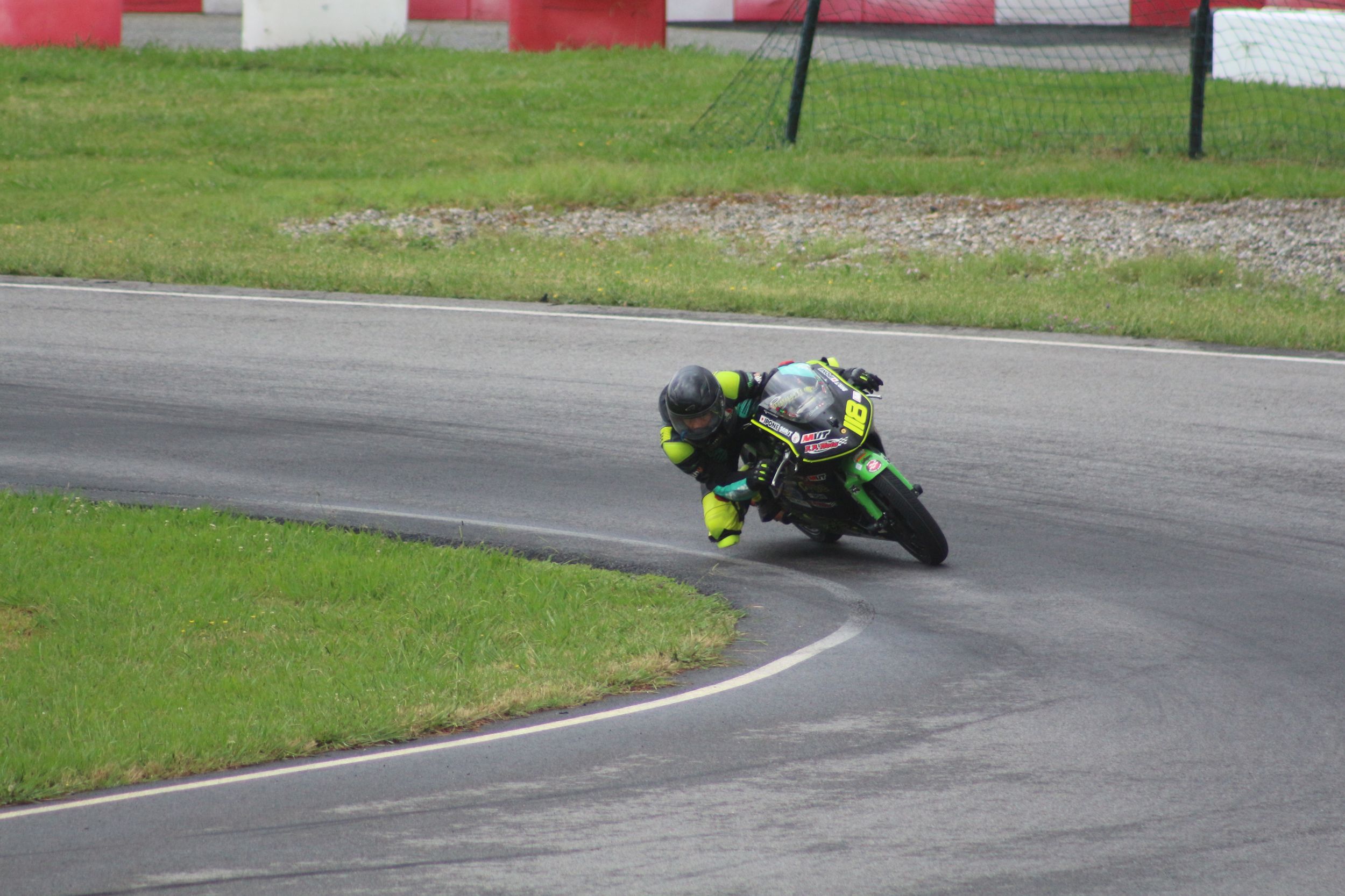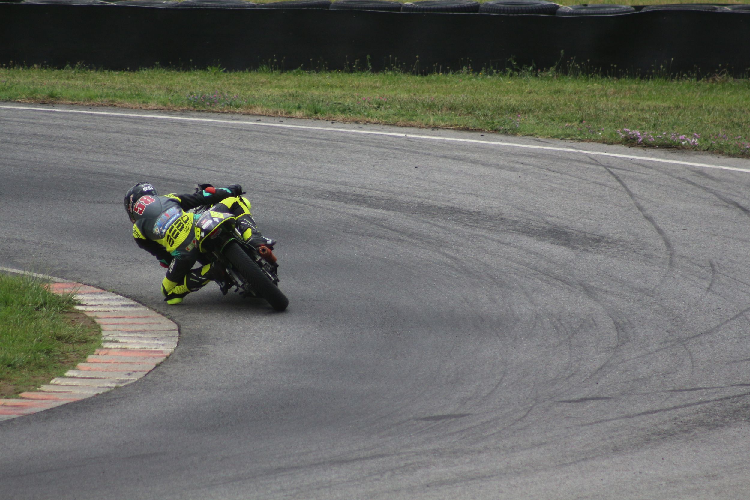 Au deuxième tour, Kevin a raté une corde de quelques centimètres, offrant à son rival une opportunité d’essai de dépassement. Cependant, il n’a pas redressé la moto, prenant le risque d’un contact. Heureusement, l’adversaire n’a pas réussi à passer, et Kevin a gardé sa position. Progressivement, il a pris de l’avance, mais ne pouvait pas accélérer davantage à cause d’un autre pilote devant lui, qui freinait très tard. Le choix était difficile : tenter un dépassement risqué ou rester prudent derrière et risquer de se faire doubler par son adversaire. Il a choisi la prudence, décidant de ne pas gâcher sa course.